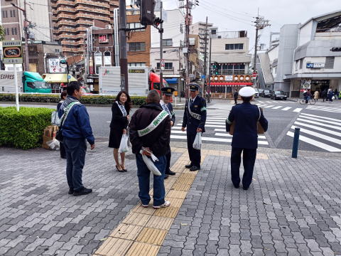 | 秋の全国交通安全運動(9/21~30)実施期間中に大正警察署と連携して、大正駅前交差点にて街頭キャンペーンを実施しました。 会員事業所10社に参加をしていただき、歩行者、自転車利用者にキャンペーングッズ、ちらしを配布して声掛けをしました。 当日は松尾支部長と大正警察署長も共に巡回していただきPR活動に励みました。 |